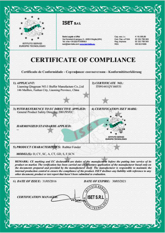 我們公司生產的緩沖器產品受到國際用戶的認可,同時獲得CE 國際認證證書、BV 國際檢測認證、PIANC會員證書、中國船級社認證證書、SGS國際認證證書等。同時,我們公司榮獲中國港口碼頭鏈商俱樂部會員、世界杰出華商協會會員、中國制造網認證供應商等榮譽。